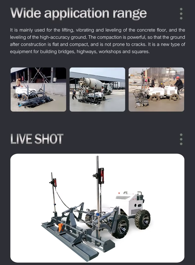 ✅️Feature highlights: The concrete boom laser leveling machine is designed for large-area concrete leveling with high precision and efficiency. It is equipped with a high-precision laser device, closed-loop control and an integrated hydraulic system to achieve automatic leveling operation.👍️CE certification ensures compliance with EU safety standards, ensuring buyers gain market access. 📱 WhatsApp: +86 19903718682